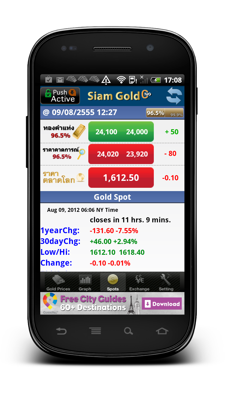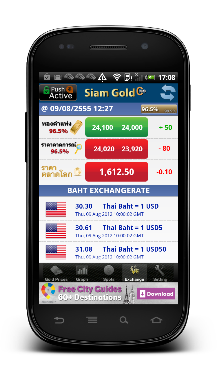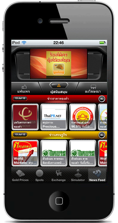 ![]() Siam Gold is an only application that helps you not to miss any valued data of gold trading investment and money exchange rates especially in Thai market. mySiamGoldPro helps you monitor easily the prices of both gold bullion and ornament, as well as the prices change history. Moreover, it can show many analytical factor data useful for forecasting your investment such as gold spot graph and data in the world market. Example Screen Captures Siam Gold on Android Siam Gold on iPhone Siam Gold on Blackberry |